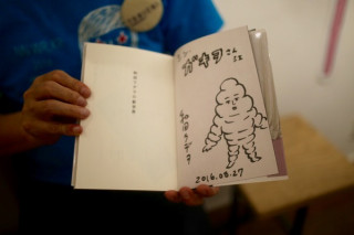 各ページに、みなさんの好きなごはんと 顔写真が載っているのですが、 BRUTUSの西田善太編集長は、 写真でなく顔の「絵」になっています。 (2枚目の写真の矢印のところ) おなじみこの絵→ ですね。