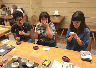 びっくりしたのは、 2階でいただいた玉露。 ゆっくりと時間をかけていれる玉露は うまみがぎゅっと濃縮されていて、 口にふくむと、 わぁ、なにこれ、すごいーーーっ! となります。 我々が驚いているまさにその瞬間を、 うおがし銘茶さんが撮ってくださいました。