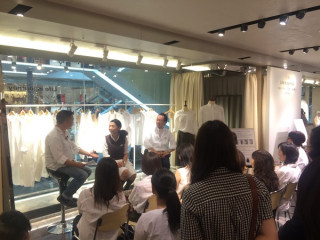 STAMP AND DIARYの吉川さんは、 フランスの女性が 引き算されたコーディネートで 白いシャツを着ているのを見て デザインのインスピレーションに されることが多いそうです。 それを受けて板倉さんも、 「引き算するコーディネート」について、 お話ししてくださっています。