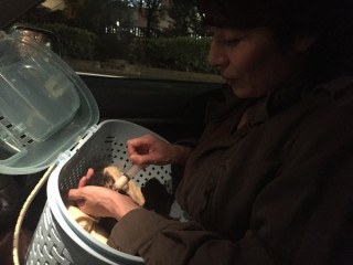 下田昌克さんは、 この時間、走ってお昼休憩に。 (2枚めの写真) まわりの緑の保護色で 下田さんも恐竜化。 でも髪が赤いからわかります。 店番、かわりに私がいたしますね。
