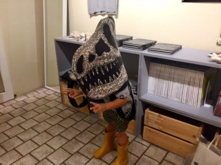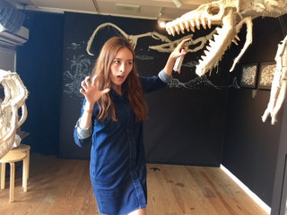 そうしたら、 いつものTOBICHIスタッフ が、 恐竜化していました。 なんか、雰囲気が‥‥。 ポーズも決まりすぎてるし‥‥。 さすが4日連続勤務しているだけある。 みなさま、いまなら TOBICHI2の2階で この雰囲気満点のおねーさんが 「恐竜なりきり写真」を 撮ってくれますよ。