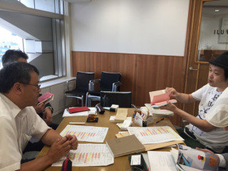 さきほど、デザイナーの大島依提亜さん、 凸版印刷の藤井さん、 図書印刷製本コンシェルジュの 岩瀬さんがいらっしゃって、 三國万里子さんの本の 造本について、 激しく相談をしておりました。