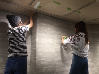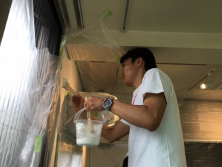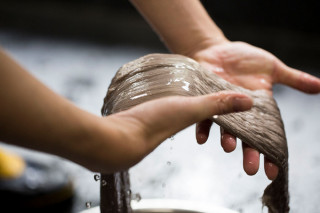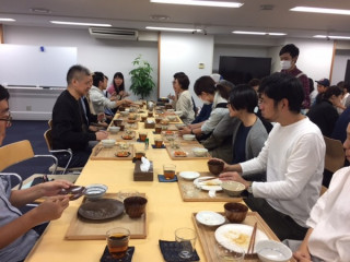 ワークショップは、 なんといっても「オリーブを染める」に 興味津々。 搬入の日からTOBICHIの竈(かまど)で オリーブの木を煮出すんですよ。 どんな色に染まるのでしょう‥‥?