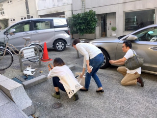 写真は、青山まつりの 打ち合わせのあとに、 青山まつりの運営をされている ブレインさんの 会社ねこを発見したときの
