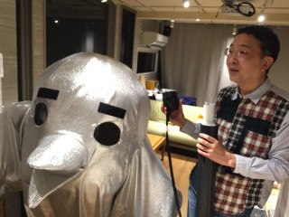 ああ、しんぱいだ。 「あやしい」「こわい」と思われて、 お客さんがぜんぜん来なかったらどうしよう‥‥。 顔にヒゲまで描いた占い師コスプレの福田さんが、 会場にぽつーん‥‥。 さ、さみしい! 人間が来なくて 本職の絵も描けないことになったら、これ、 まさに、「陸に上がった河童」! (意味:自分に適した環境から離れて力を発揮できず無能になること)