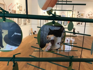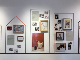 今回は、 「保護動物の街を作りたい」 ということで、 お家の形が並んでいて、 その中に、保護動物の 写真や、作家さんによる作品が 展示されています。
