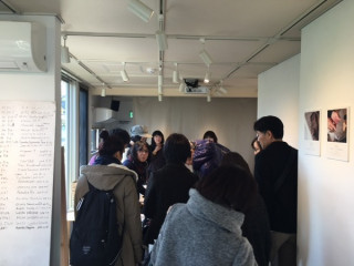 今回の卒業生コーナーは、 ギャラリーの真ん中に、 ツリーを模したオブジェがあり、 そこに、みなさんが持ってきた 写真を貼ったオーナメントを 吊るしていく形です。