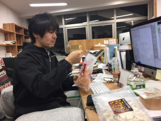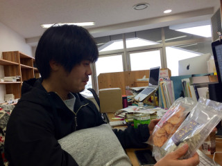 めんたい味だから、たぶん 福岡に出張した人たちが忘れてったんだね。 奥野さんの机におせんべいを置いた方〜。 置いた方〜。‥‥しーん。