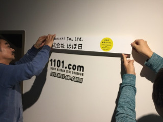 ひととおり、写真を撮ったあと、 あらためてあたらしい看板をぺたりと設置。 (あ、ちゃんとしたロゴは いままさにつくっている最中です)