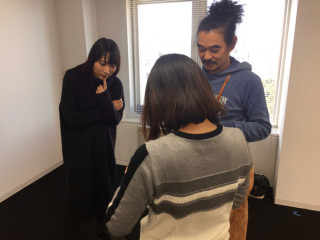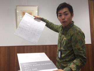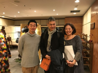このコラボの出会いは、 ほぼ日手帳に関わっていただいている 方々にお集まりいただく 「手帳大ミーティング」という会で うまれたんだそうです! 皆川さん、普賢寺さんと、お仲人イトイで お写真パシャリと。 ほぼ日にとっても、うれしいお話でした。