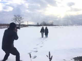 三國万里子さんとなかしましほさんと、 新潟に出張しています。 今日は新潟のこの季節の天気にしては奇跡的なきれいな晴れ間だったそうです。 雪景色のなかたたずむ姉妹の写真をたくさんとれて、満足です。