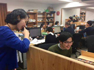 と私が に 意見をきこうと イトイの部屋にやってきました。