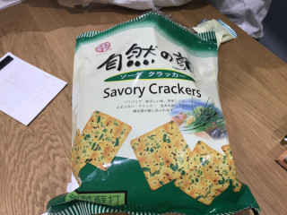 ところで、こんかいの会議のおやつは、 台湾から買ってきたクラッカーです。 「自然の顔」シリーズは、 小分けになってて便利だし、 たいへんウマイです。 海苔がまぶしてあるのがおすすめです。 |
