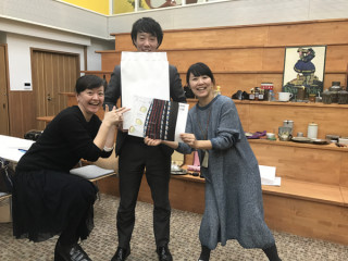 が編み始めたのをみて、 はじめてさんたちが興味を持ち始めた様子。