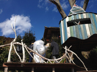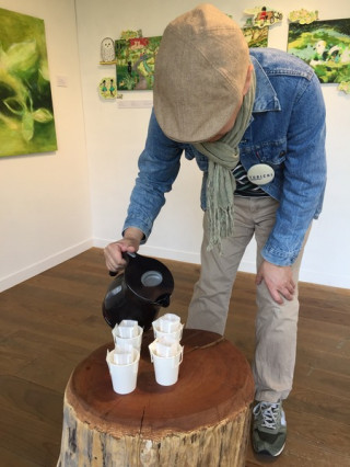 「公園でコーヒーを飲んだらいいかも」 とふいに思いつき、 なんとかのひとつ覚えなのですが、 ここで淹れることにしました。 なんでもないカップオンタイプを 近所のお店で見つけてきて お湯を沸かして、 「切り株に集合ー」 居合わせたお客さんたちと一緒に 飲みました。 「はじめまして、どちらから?」 などとおしゃべりしながら。