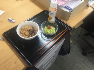 などと言っていたら、 隣の席の が 「ぼくの非常食ですけど」と言って、 レトルトのたきこみご飯をくれました。