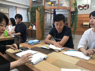 さん、 が、 みんなでフグの飼い方についての 本を読んでいました。 お、フグ部、 新アルバイトちゃんたちに 引き継がれたんですねー。