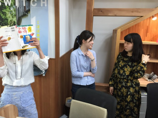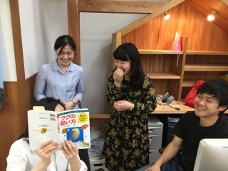 そして、フグの本を顔にあてて 動きまわったりなど、 おもしろお姉さん は、今日も絶好調。 新アルバイトちゃんたちも 大爆笑していました。