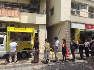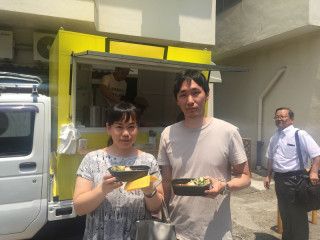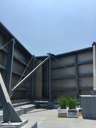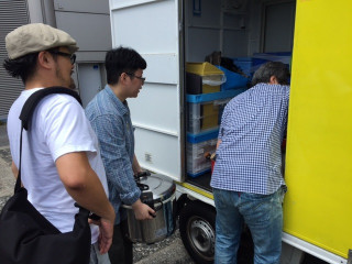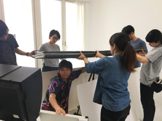 しかし、それではなかなかうまくいかず、 たくさんの人がパネルで影をつくる、 という方法も試していました。