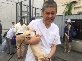 ドコノコオフ会では、糸井も会場をまわって、集まった飼い主さんたちと話したり、いぬねこをだっこしたり。「このせつない目がたまらないよねー」