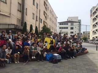 ドコノコオフ会、さいごはみんなで記念撮影!県外から来てくださった方もたくさんいらして、ほんとうにうれしいです。ここであたらしいお友達ができたりすると、さらにドコノコが楽しくなりそうですね。参加してくださったみなさん、ありがとうございました!さて、このあと14時半からは、ここから3分ほど歩いたところにある八戸ブックセンターに移動して、ほぼ日手帳ミーティングが始まります!