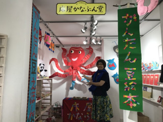 駄菓子コーナーもご用意して、 縁日みたいなたのしいコーナーが完成です。 明日金曜から、日曜まで、 ぜひぜひ遊びにいらしてください! TOBCIHI2の「にて隊」と すてきな4畳間の 「床屋かなぶん堂」を よろしくおねがいしまーす!