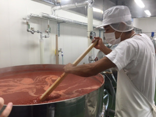 トマトのおいしさを損なわないよう、 丁寧に時間をかけてジュースへと 加工しているのですが、 真摯につくられている様子に、 身がひきしまる思いでした。