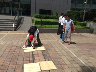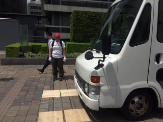 ちなみに先ほど フードトラックを搬入しましたが、 地面を傷つけないよう、 みんなでタイヤの下に板を引きながら ゆっくりと車を進めていったのが ゲームみたいで面白かったです。 実際にフードトラックを走らせてみると 意外なところで 「あ、こういったことも考えなきゃ!」が たくさんあって、たのしいですね。 |