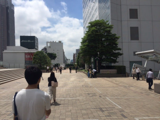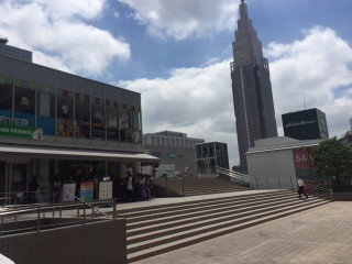 場所は、新宿駅南口を出て、 おおきな横断歩道を渡り、 NEWOMANとパン屋さんの間の通りを ずーっと行った先になります。 スターバックスなどの横を過ぎ、 SHAKE SHACKのお店があるすぐ前。 Eddie Bauerなどがある広場です。