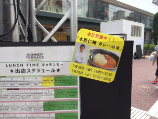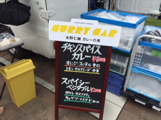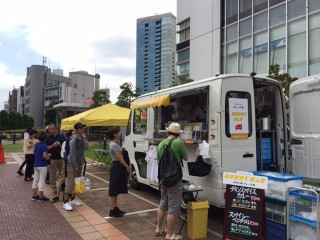 さて、こちら新宿です。 「カレーの車」いろいろと準備が済みまして、 11時すぎからオープンしておりますー!