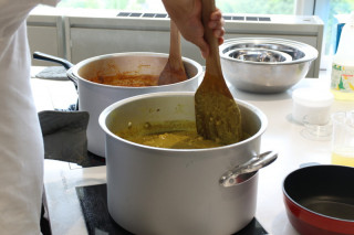 さきほどキッチンを訪れると 水野さんとリーダー、そして 新スタッフの青木さんが すでに最後の仕上げをおこなってました。