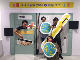 さらに、奥には 人間大サイズのほぼ日手帳パネルが。 ここで写真を撮って、 ぜひぜひシェアしてくださいね!
