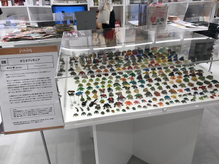 3階のほぼ日手帳売り場の展示には、 祖父江慎さんのかえるもありました。 ガラスの仮面とかえる、 結果、祖父江慎さんはしごをしまして、 会社にもどります。 |
