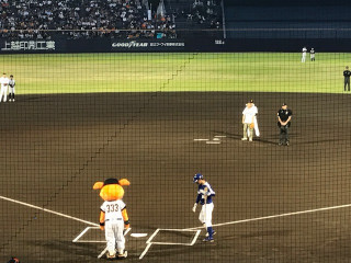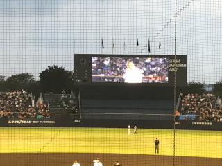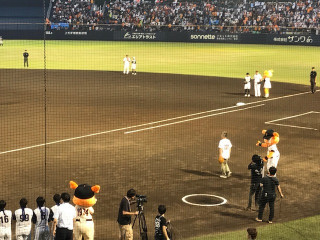 というわけで、大きな拍手が起きました。 いやはやいやはや。 「泣けるー」と誰かがいいました。 大げさなようですが、 ちょっとだけわかる気が。 なんといっても、始球式ですから。