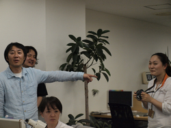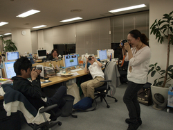 笑うカメラマン。