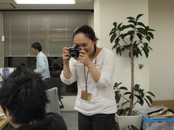 笑いながらファインダーをのぞいてます。