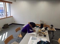 編み物チームで合宿中。