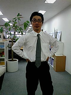 ご覧のように、スーツ姿。