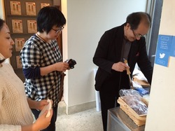 焼き印を捺す河野編集長。