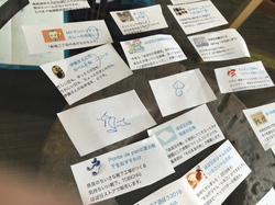 きのこと粘菌をかいた札を
