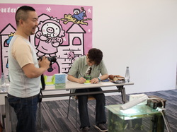 たかしま先生がサインをする様子を