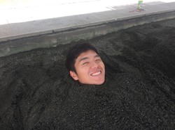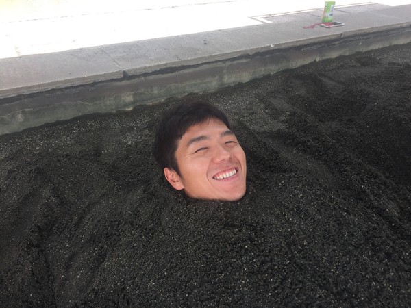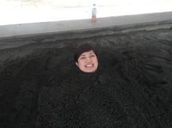 ぎゅうぎゅうに熱い砂を入れてもらって