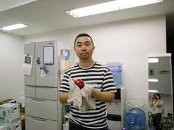 ふと見ればその横でリンゴを磨くシェフ。