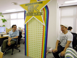 ラグビー風に山下さんにパス!」