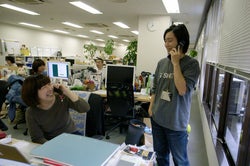 携帯片手に