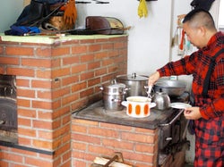 薪で加熱するストーブ、