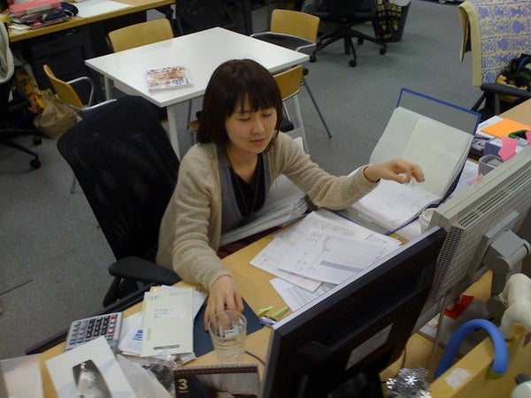 白い紙をいっぱい広げている