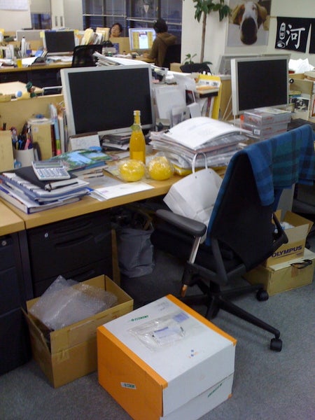 机のまわりに、いろいろなものが、