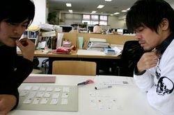 伏し目がちなふたりが、黙々と‥‥。