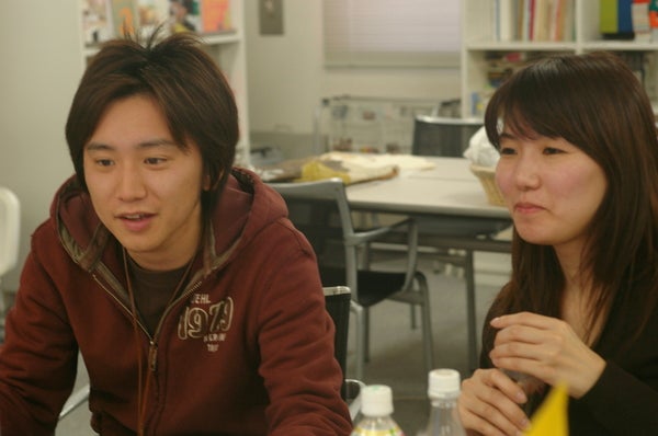 一台の同じパソコンに向かって